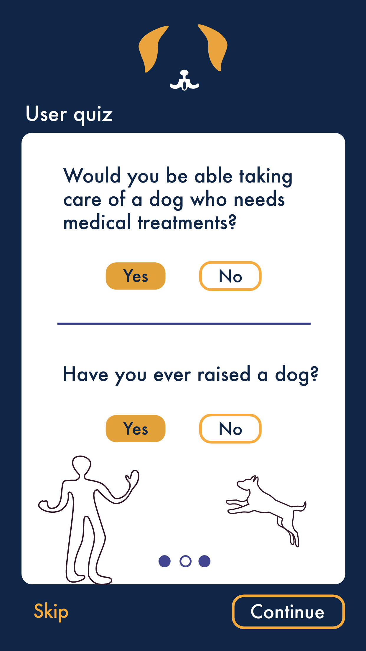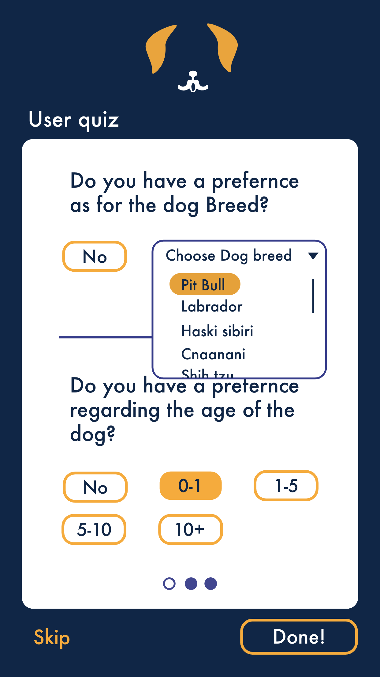 User quiz will filter the user aspires and show the most relevant dogs to his human